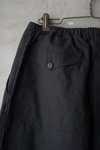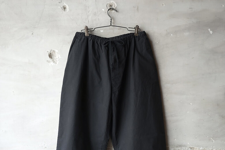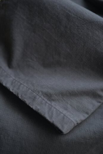 ナイロンでよく見られるリップストップ。あまり見かけないコットンのリップストップを使っています。無数に走るステッチにより素材の堅牢度が上がり、日常的に穿き込めるパンツです。洗い加工が施されており、初めから少しアタリが見られます。これから先の経年変化を想像することができました。休日に、仕事に、あるいはアウトドアに。様々なシチュエーションにCOMOLIは馴染んでくれます。