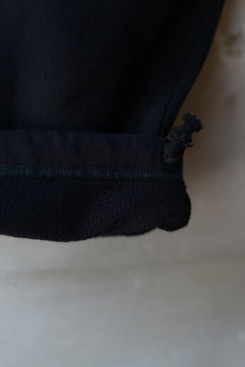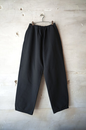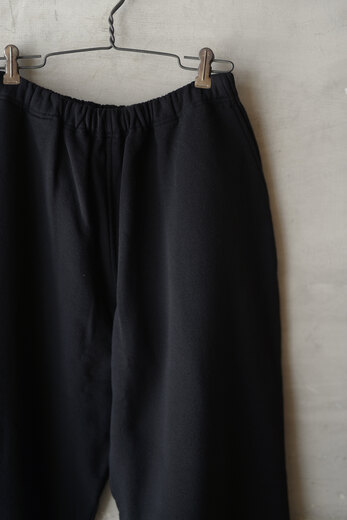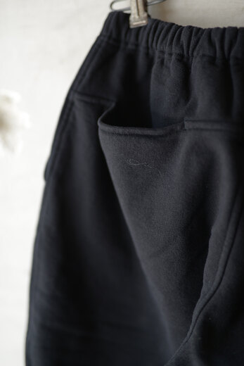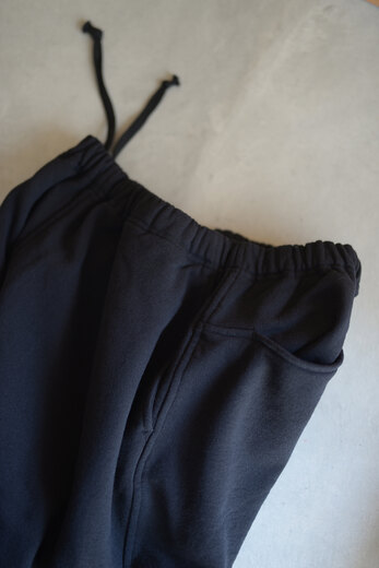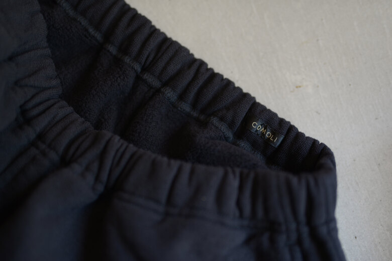 何気なく、気軽に、長く着れる(着たい)洋服。でも雰囲気があって・・・。COMOLIにはそういう物が多くある。いつもそこにあってとりあえず着とけば大丈夫。気分も上がるし格好良い、けど格好付けてない。そんなイメージの洋服。空紡糸を使った裏毛のスウェットパンツ。吊編み機でゆっくり、しっかりと織り上げられている。初めは少し硬めで着ていく内に柔らかくなり、どんどん気持ち良くなる。裾にはコードを通し、絞れるので靴に合わせて変化を付けられます。使い古したスウェットは昔からとても好きで、あの何とも言えないフェードした色と生地のクッタリ感、いつの日かそんなスウェットパンツになる気がします。