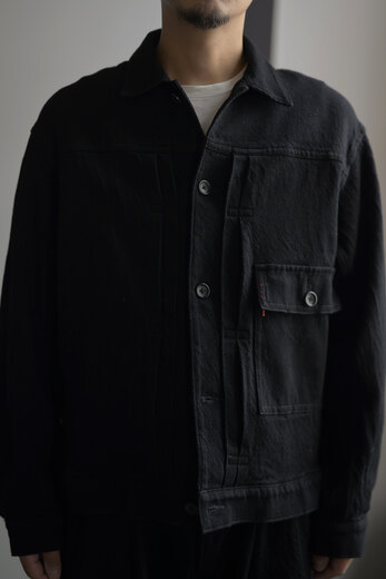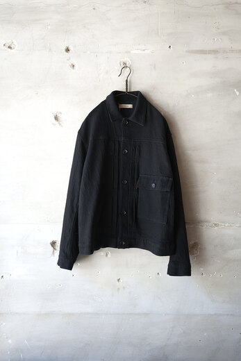 甘く織られた太綾のデニム、デニムとは思い浮かべる表情とは全く異なります。柔らかく、空気を孕むような膨らみがあり、体を優しく包み込んでくれます。全く頑張らなくて良いデニムジャケットです。所謂Gジャンの赤タブの近い位置に施したドローイングをイメージしたハンドステッチがアクセントに。通常のデニムと同様に着用による色落ちが起こります。この柔らかい生地がどんな風に育っていくのか。そこも楽しみの一つでもあります。