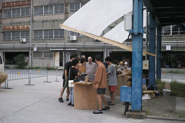 オリバーのアンティークリネンシャツの中に白い古着のTシャツ。イギリス軍のパンツを穿く。靴はそのみつのボタンシューズ。今日はオープンを二時間遅らせる事にした。北加賀屋で行われるDESIGN EASTに行くためだ。週末だし、どうしようか悩んだけど、もう会社員でもないし、自由に決めたら良いか!と思い柳原さんと原田さんにお誘い頂いていたので行くことにした。初めて降りる北加賀屋。多分行きそうな人に付いて行くとすぐに建物が見えてきた。中に入ると柳原さんがいたので手を振る。めちゃくちゃ広いしでかい。これは時間が足りないなーと思いながら受付を済まし、4階から見ていくことにする。2階に上がると原田さんに会う。久しぶりにしのちゃんと小村くんにも会えた。少し話をして4階へ上がる。mame kurogouchiの展示。がみちゃんにも久しぶりにお会いできた。広い空間の中に大きな綺麗な生地がドーンと展示してあった。圧巻。風に揺れる様がとても美しかった。今までの生地も見れるようになっていた。3階に降りるとまた原田さんに会う。展示の説明をしてくれる。イタリアのデザイナーEnzo Mariさんの講演にインスパイアされ構成した展示らしい。とても強い言葉が並んでいて僕もきみえも刺激を受ける。ドリンクが買える所にははるかちゃんがいた。ワインを飲む。トークショーが始まりそうだったので一階に降りて何か食べようという事になる。そしたら久しぶりに山田さんにもお会いする。挨拶をしてご飯を食べに行く。色々あったけどタコスを買う。柳原さんがおすすめと言っていた薪火野さんのパンを大人買いする。あとで柳原さんにクッキーが1番おすすめ!とまた言われたので、買いに行くと売り切れていた。原田さんにおすすめされたアイスも食べる。美味しくていつの間にかなくなっていてきみえに怒られる。一旦2階に戻りしのちゃんと小村くんのブースを覗く。エコバッグを買う。忙しそうだったので、じゃあまた!と挨拶をして降りる。北海道の熟成昆布を買う。中学からの友人にもばったり会う。ゆっくりしたいけど、そろそろ時間が迫る。デザインのプロが集まるとすごいなぁと思った。