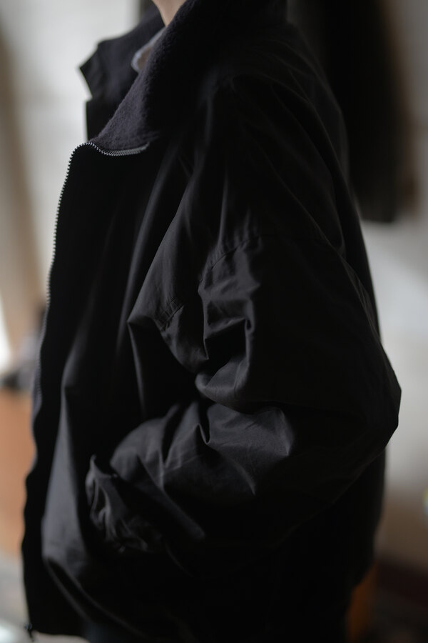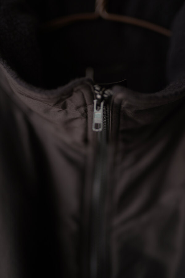 色というのは人によって違って見えたり、場所や環境によって印象が変わることがあります。おそらくほとんどの人が黒と答えるかもしれません。しかし日光に照らされると茶色というのがわかります。黒に見えるけど茶色、茶色ではあるけれど黒く見える。その絶妙なニュアンスのあるジャケットです。