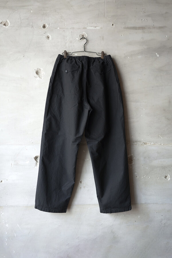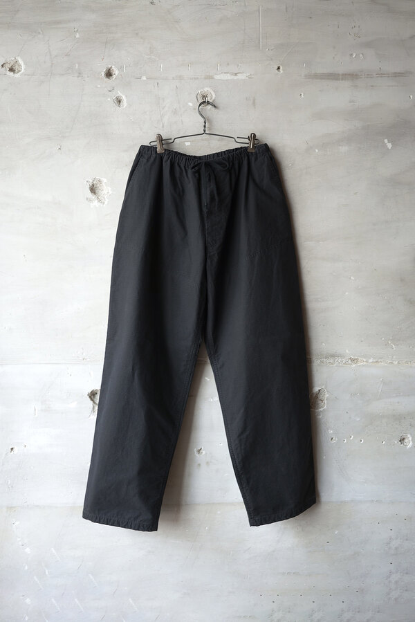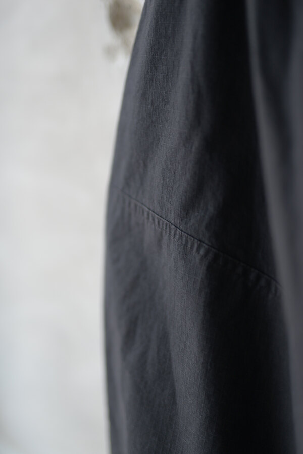 ナイロンでよく見られるリップストップ。あまり見かけないコットンのリップストップを使っています。無数に走るステッチにより素材の堅牢度が上がり、日常的に穿き込めるパンツです。洗い加工が施されており、初めから少しアタリが見られます。これから先の経年変化を想像することができました。休日に、仕事に、あるいはアウトドアに。様々なシチュエーションにCOMOLIは馴染んでくれます。