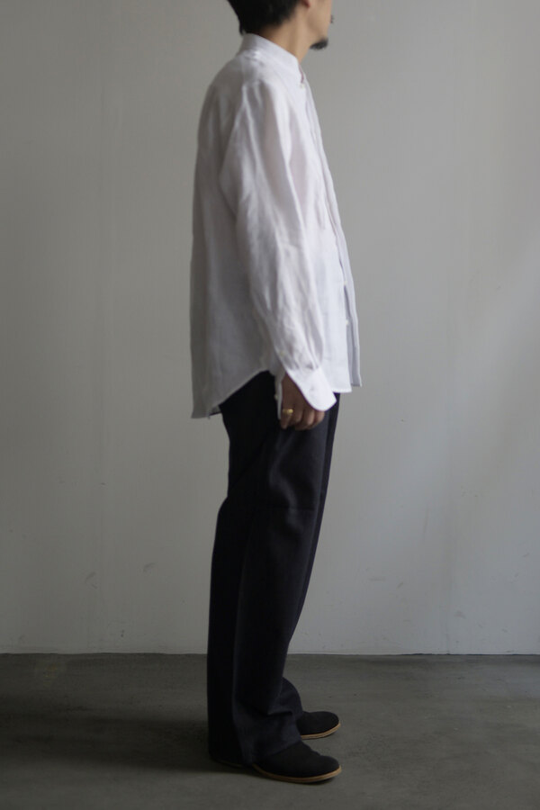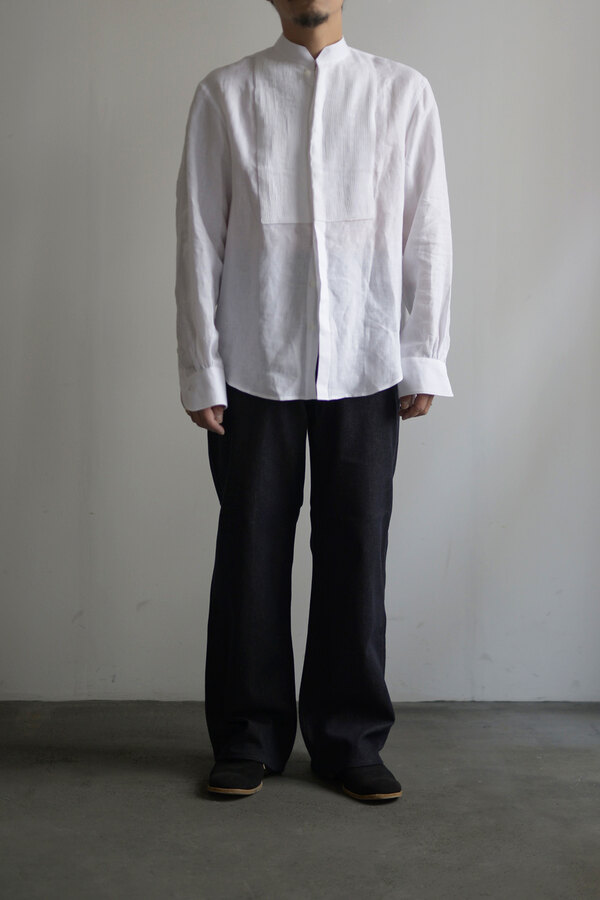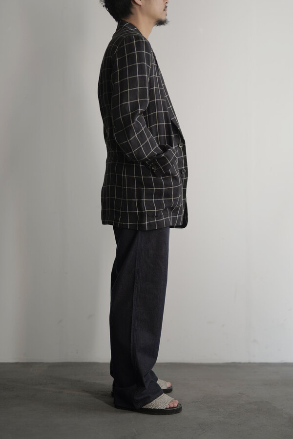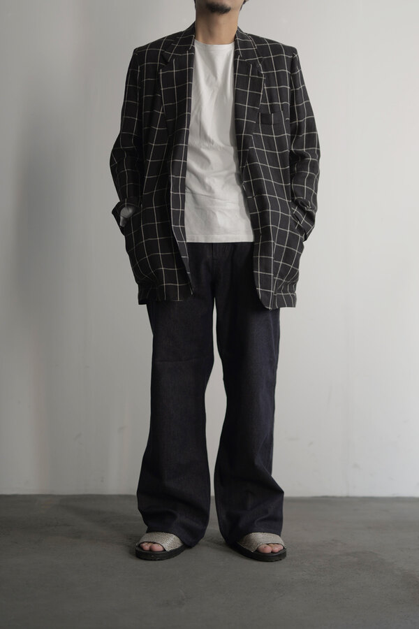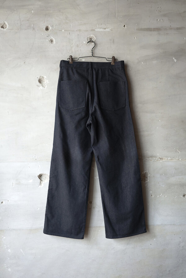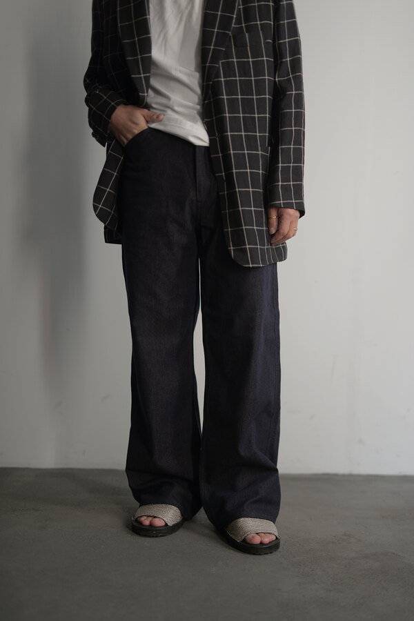 『普通は10%くらいしか入ってないと思うけど20%かぁ、だからこんなに柔らかいんやね。』とこのデニムを触ったお客様が言われていました。カシミアが入っています。デニムなのに肌が喜んでいる、そんな感じです。オンスはそこまで高くありません。軽やかに、心地よく穿けます。形は定番の5 PKT TROUSERS、太過ぎず、細過ぎず。腰回りはすっきりと。少し足長に見える気がして気分が良いです。同色のステッチでミニマムなデニム。どんな風に変化していくのか楽しみです。