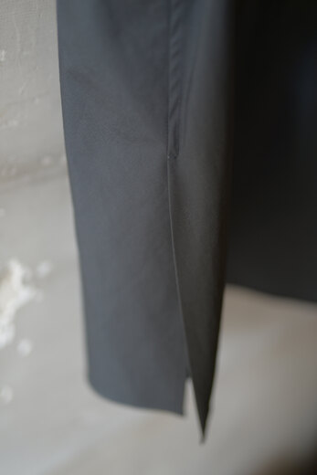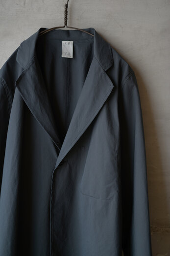 どこにもないゼロに向かって飛んでいく感じが22年SSのテーマ。このジャケットの名はZERO JACKET。一枚仕立ての仕様で見返しなく、程良く張りのある軽やかなジャケット。もはやジャケットと呼ぶべきか悩むほど軽い。横のスリットが深くパンツのポケットに手を入れた時に出来るシワがさり気ないく凛とした雰囲気がある。色目はseya.らしく、まるで香りを調合した様な色目で淡いのに力強い。そして深い。しかも他とのバランスがとりやすい。あなたらしい洋服にプラスするとまた違う自分が現れるのではないでしょうか?1にではなく0にというphilosophyが心の風通しを良くしてくれて何かスッと剥がれ軽やかになった気分にしてくれる、それがZERO JACKET。