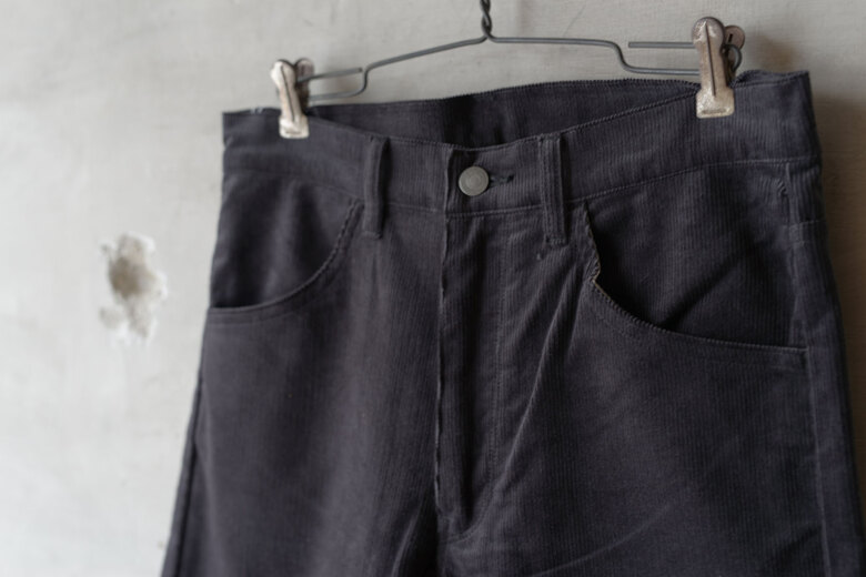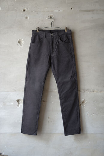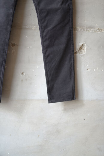 細いパンツをお店に並べるのは珍しい。何故なら足が太くて穿けないからだ。しかし要望が多々あり、トライしてみる事にした。実際にお客様が試着されている所を見ているとスラッと見えて凄く格好良いなと素直に思う。テーパードが効いた細くてシンプルな5ポケット美脚パンツ。コットン100%の細畝のコーデュロイが使われて、肌あたりも良く心地良さそうな素材だ。そしてSTONE NAVY、ネイビーだけどグレーがかっていて奥行きのあるこの色にとても惹かれた。スニーカーも良さそうだし、サイドゴアのブーツも良いでしょう。冬を楽しめるコモリのコーデュロイパンツ。