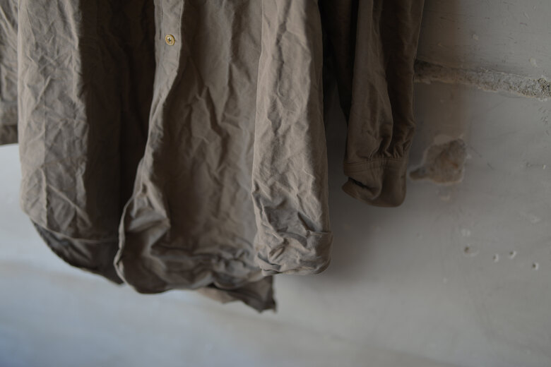 ヨーロッパの古いシャツは丈の長い物が多い。その空気感や雰囲気に憧れて気に入ったものを見つけては買って着ていた。ここ数年は現代的な長さのシャツばかり着ていたせいか、このシャツを見た時に心が躍るような感覚だった。