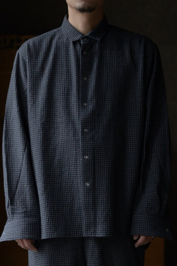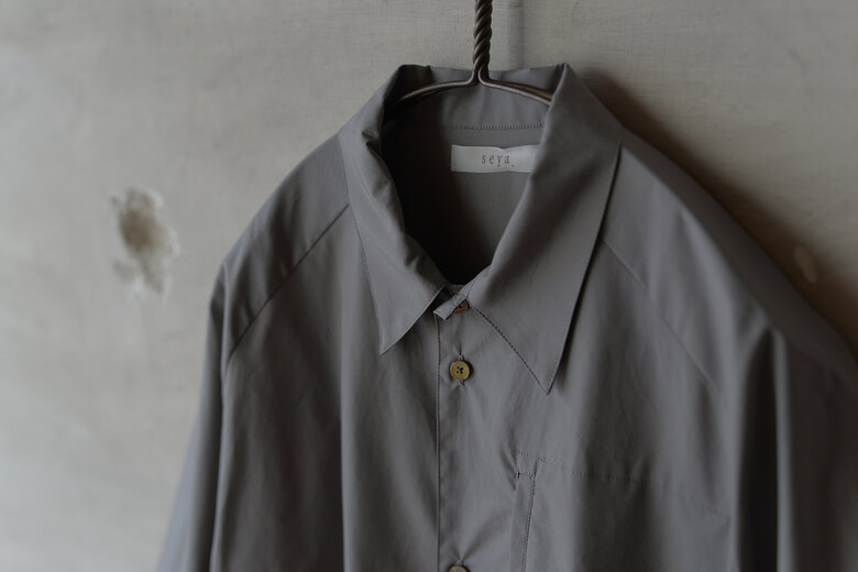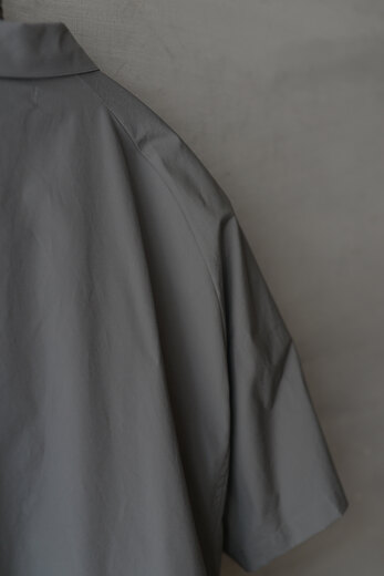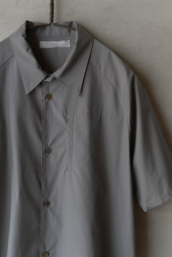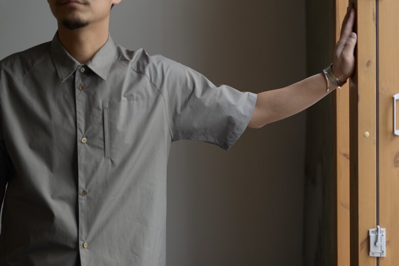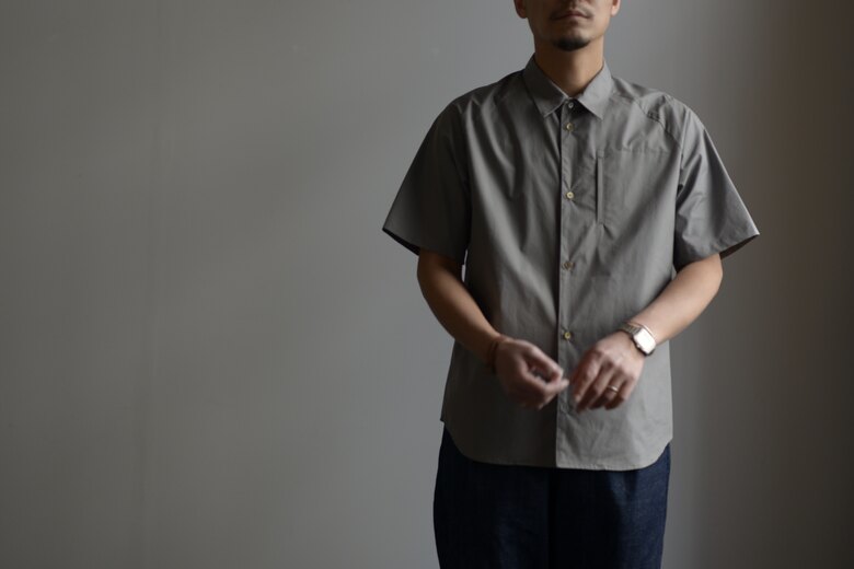 『シャツは長袖だ』、そんな風に思っていたがここ数年で考えが変わった。本当に暑い真夏にはTシャツやポロシャツがメインになる。しかしそれでけではあまりにもバリエーションが少なく楽しめない、そう思って半袖シャツを着るようになった。細番手の糸を高密度に織り上げたMICRO BRUSHED COTTON。ラグランスリーヴで肩周りも自然に見える。カラーはLEAF GRAY。グレーだが日光で見ると、奥の方にグリーンが見えるような見えないような。そんな瀬谷さんらしい、他には無い色が気に入った。横型の胸ポケットはカードケースやスマホを入れておくのに便利。シャツだけあってキッチリ見えるし、パンツも色々な物で合わせられてサンダルとも相性は良い。半袖だからこそのディテールもある・・・中々奥深いのかもしれない。