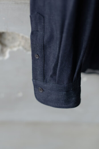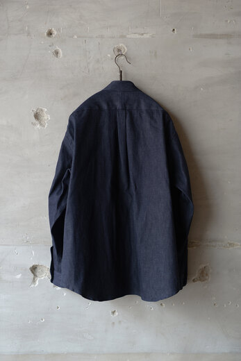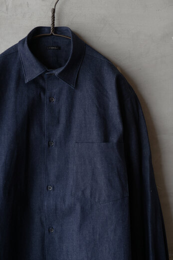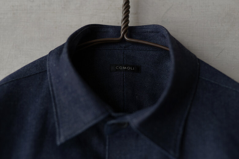 コモリのデニムシャツほど数年後に様変わりしているものはないと思う。なぜならシャツ自体のデザインがミニマムだからだ。ステッチも同色でボタンも黒。着て洗って、を繰り返す度にステッチやボタンとのコントラストが生まれる。それは人それぞれ変化が異なり、長く着た人にしか味わえない楽しさがあるシャツなのだ。
