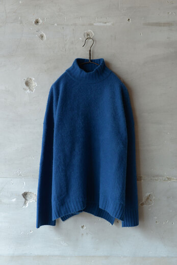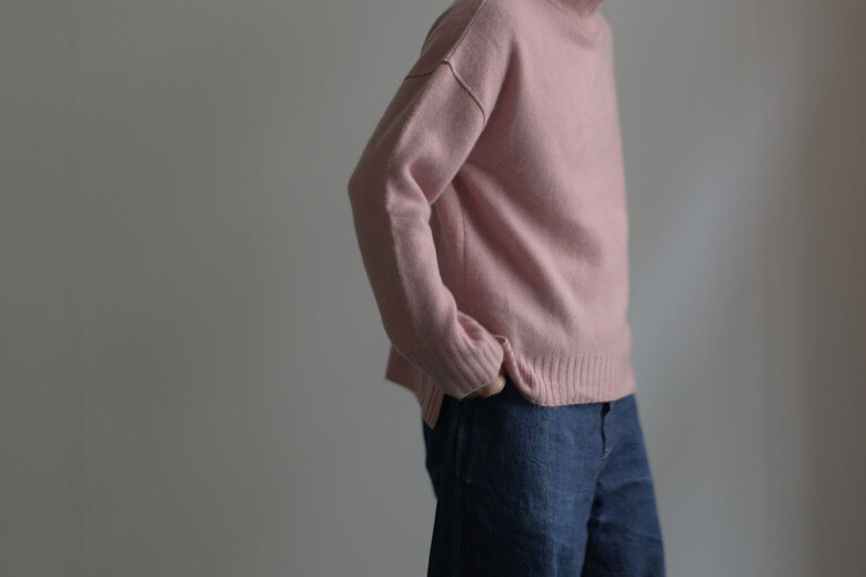 インディゴさんのセーターを着るようになってからというもの、冬にはほぼ毎日セーターを着るようになった。冬にしか着れないという特別感もあって、暖かいし、何と言っても着心地が最高だ。私は寒さには強くはないけれど、インディゴさんのセーターのおかげで冬をもっと楽しめるようになった気がする。タートルネックは着ていく内にダラんとしてくる事があるけど、このハイネックは二重仕立てで少し短め。だからいつまでもしっかりと立っていてくれる。そして最高級のカシミヤなので首元はチクチクせず快適で、素肌に着たくなる贅沢なセーター。身幅はたっぷり、軽やかで美しいシルエット。ジャストで着るのも良いし、いつもより1つサイズを上げるのもオススメです。