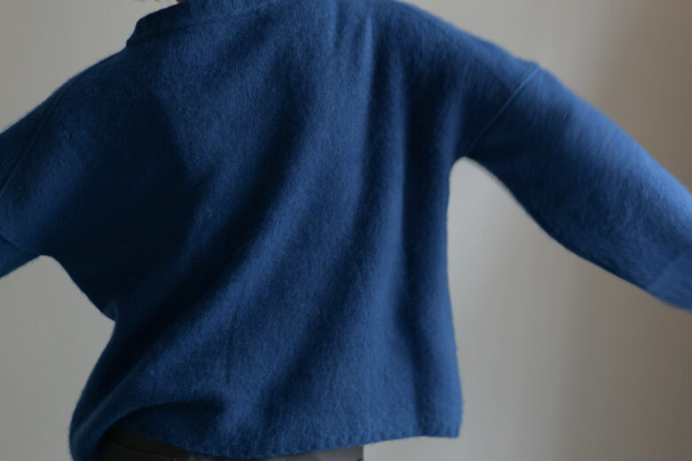 インディゴさんのセーターを着るようになってからというもの、冬にはほぼ毎日セーターを着るようになった。冬にしか着れないという特別感もあって、暖かいし、何と言っても着心地が最高だ。私は寒さには強くはないけれど、インディゴさんのセーターのおかげで冬をもっと楽しめるようになった気がする。ガンジーセーターがベースのデザインだけど重くない、肩が凝らない、チクチクしない、素肌に着るのが贅沢なセーター。身幅はたっぷりAラインでニットなのに軽やかで美しいシルエット。ジャストで着るのも良いし、いつもより1つサイズを上げるのもオススメです。