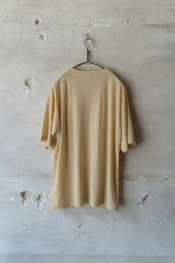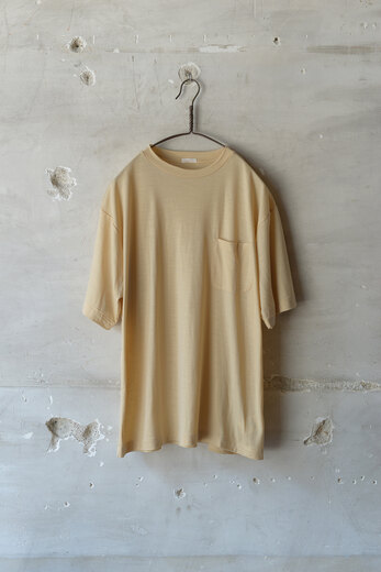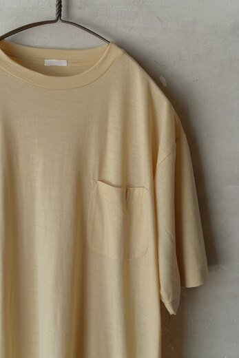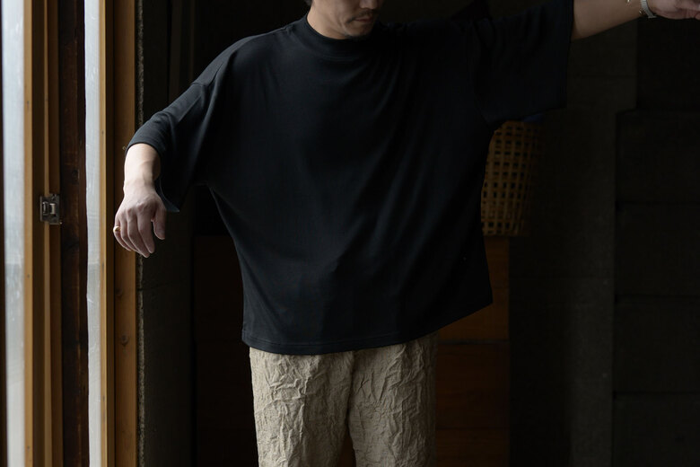 夏は暑い、何を着ても暑い。汗っかきだからこそウールTは必要不可欠なのだ。ウールは適切な温度を保ってくれるしすぐに乾く。そして臭いも付きにくく、汗っかきにとっては魔法のような素材。水洗いも可能なので汚れを気にせず着られる。素肌に触れてもチクチクせず、むしろ心地が良かった。今年の形はごくシンプルなTシャツ。バインダーネックでヨレにくく、袖丈も短過ぎず長過ぎず。程よくゆとりがあってウール天竺の上品さとも良いバランスだ。そろそろ真夏の準備をしないと。
