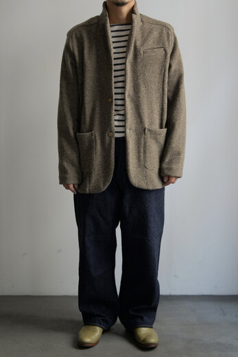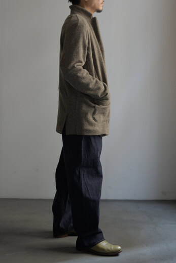 カーディガンの様な使い心地で、ジャケットよりも気楽に羽織れる。あると便利なのがニットジャケット。OLIVERという形のジャケットはシンプルな3つボタンジャケット。(作りはシンプルではない)生地はウール天竺のニットで柔らかいけどしっかりした素材を使っている。袖を通すとニット特有のストレッチのような伸縮性があり、とても快適。そしてウールの暖かさをじんわりと感じる。中に着込める余裕はあるので、アウターとしても着れそうだ。バスクシャツにデニムと。この普通の感じが今は新鮮に感じた。寒くなるのが待ち遠しい。