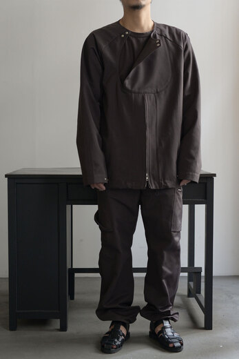 最近、異国のドレスを買った。とても深い黒い生地に赤い刺繍が大胆に施されている。そのルーツが知りたくなり、”THE WORLD HISTORY OF DRESS”という本を買った。そこには世界の民族衣装の説明が写真とともに掲載されている。うっとりする程の鮮やかな生地に刺繍。贅沢に使われた生地。気候や宗教、色々な背景の元使用されたデザインが興味深い。ワークウエアでもミリタリーでもない、”それ”は日常着でもあり正装着でもあり、”それ”を着る人たちもまた魅力的だった。私たちが着ている服のルーツはその辺りにある。RAJASTHAN PARKAは滑らかな、しっとりした生地。デザインは決して着やすいモノではないのだけれど、こういう類いのものは、着る度に発見と課題をくれる。それに、好きな洋服って何度も着るからどんどん馴染みその人らしくなる。要するに、自然な自分が表現される。だから好きな洋服を見つけてください。毎回、Omar Afridiの洋服が並ぶと、なんとも贅沢な空間にいる心地になる。どこかの国の人が日常にあるいは正装の際に着用した”それ”のように贅沢に生地を使いデザインされ、プロセスがあり作られている。