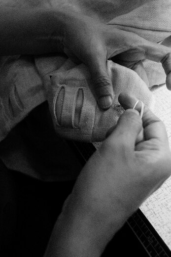 秋冬のオーダーがメインではありますが、今すぐ着れるパンツを作ってもらっています。僕の大好きな形である”EROS”。ワイドで動きやすく、他にはない立体的なパターンやデザインと空気感。穿くだけで様になるパンツです。素材はリネン。前回のイベントで作ったシャツと同じリネンで1900年くらいのフランスのリネンパンツをイメージし、今回は染色無しのそのままにしました。程よく厚みがあるので、パンツにも合うと思います。そのパンツの製作中の写真を送って頂きました。こうやって見ていると人の手で作られている、そんな当たり前の事に感動してしまいました。限りのある生地だったので少量にはなりますが、その作られているプロセスも一緒に体感して頂ければと思います。