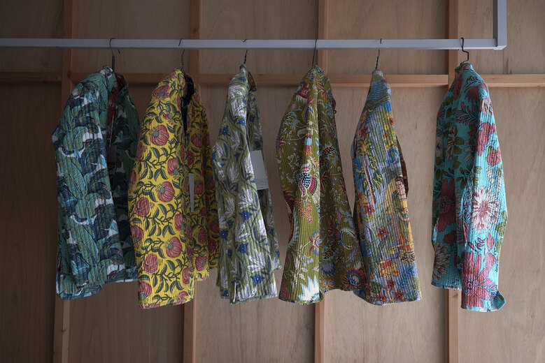 インドの手仕事を伝えるPERIOD FEATUERS。 手織り物の産地であるウエストベンガルの小さな村で、糸を紡ぐ所から洋服になるまで全て手作業で行われています。