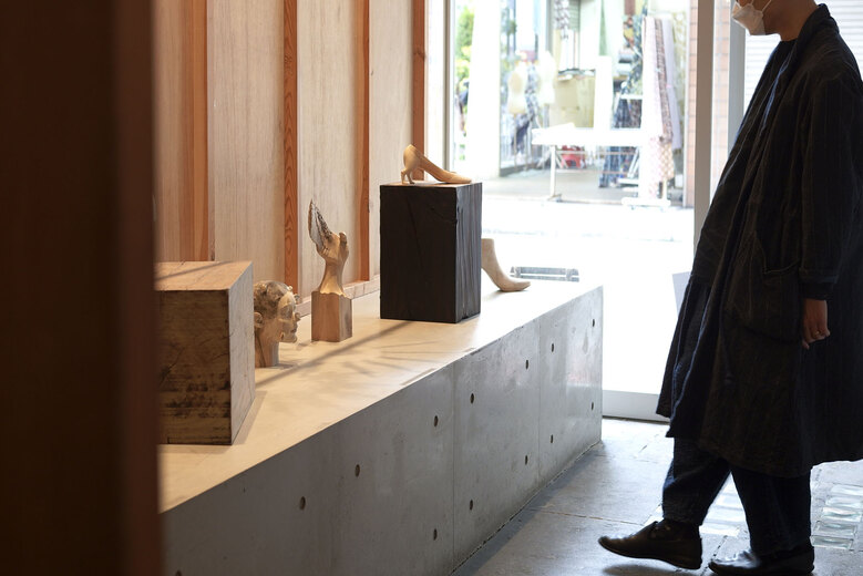 アートに興味はあったけど、買う所まで至らなかった自分が初めて購入したのが西浦さんの作品でした。1つはお店に、もう1つは自宅に飾っています。それまでは買う物というよりも見るものという認識があったと思います。実際に手にしてみて、その空間に存在している事に対する感情が自分自身の頭の中をとてもクリアにし、そしていつもとは異なった思考を見つけさせてくれる・・。それはとてもプラスに働いているように感じました。置く場所、角度を変えてみたり。日々感じることは違いますが常に高揚感がありました。そこで気付いたのは、良いジャケットやシャツを着る、気に入った革靴を履く。そこで感じる事とあまり変わらないのです。何故か自分の頭の中で敷居を高くしていただけで、洋服を買う事と同じなのではないか、そんな風に思いました。いつもと違う特別な店内ですが、いつもと同じ様に好きなものを探しに来て下さい。展示は4/24(日)まで行っています。ご来店お待ちしております。