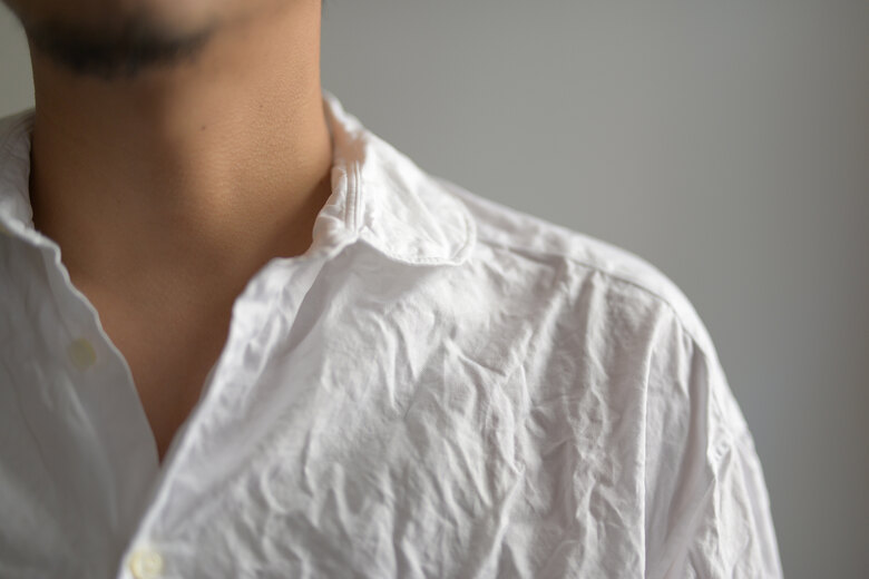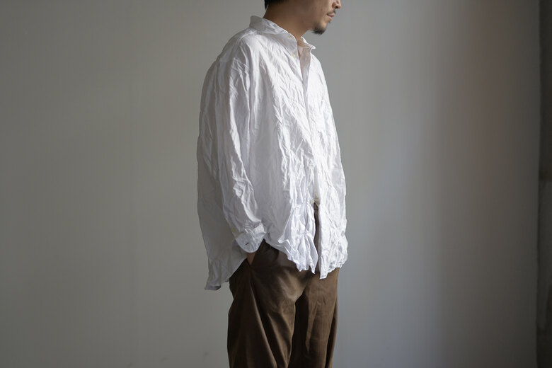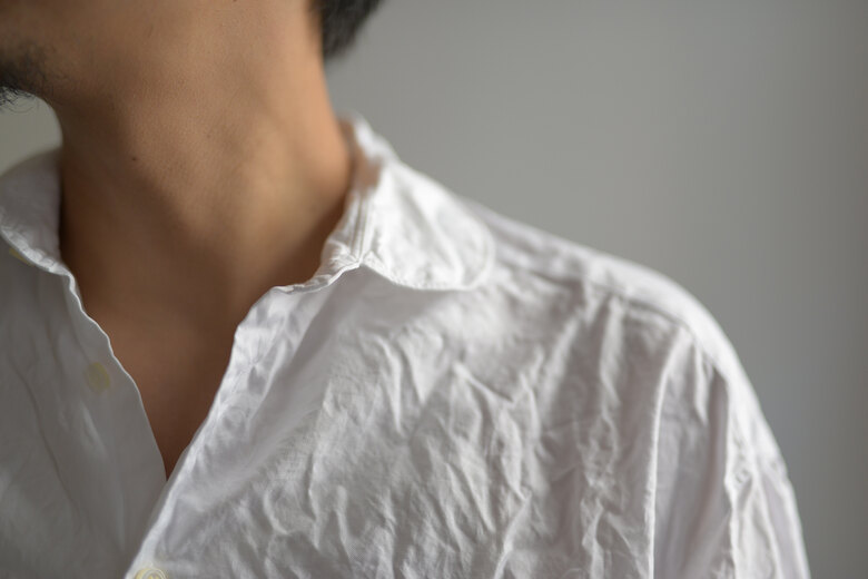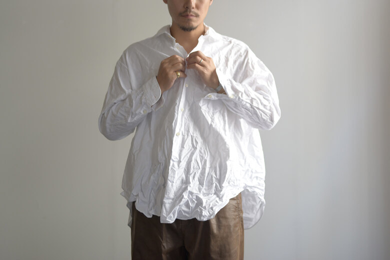 ラウンドカラーのシャツを洗い晒しでラフに着る。贅沢な感じもするし、何だか品が良い。そんな白に憧れる。