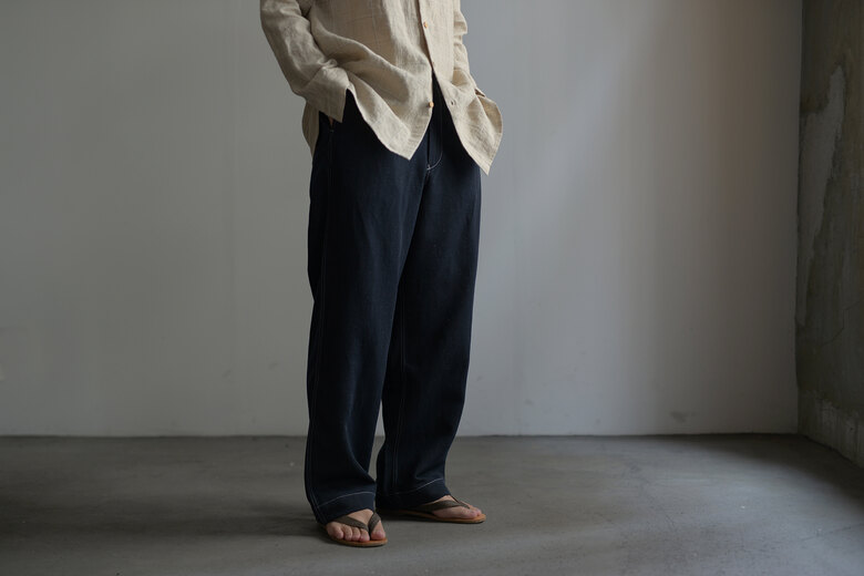 新しい生地のプルパンツを穿いてみるとやっぱり良いなぁと思いました。別に格好つけるわけでもなくて、ちゃんと体に馴染んでくれる感じ。そしてとても身近に感じるのです。そんなプルパンツが2種類の届きました。