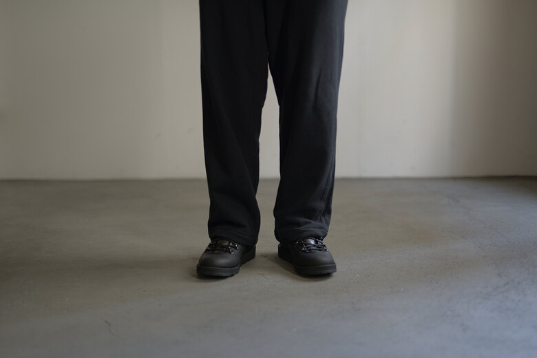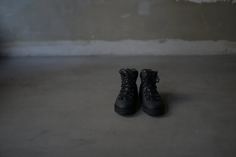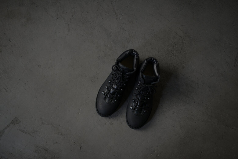 今、突然現れた漆黒のトレッキングブーツ。とても重そうに見えたが、実際足を入れてみると軽い。そしてソールはフカフカする事はなくしっかりしている。それはAFOURの履き心地だった。レザーは雨の日も履けるオイルドヌバックレザーにマット加工を施したCODE MATT BLACKと同素材で経年変化も素晴らしい革。真冬にCODEでは少し足首が寒く感じる時が多かったので、これは嬉しい。