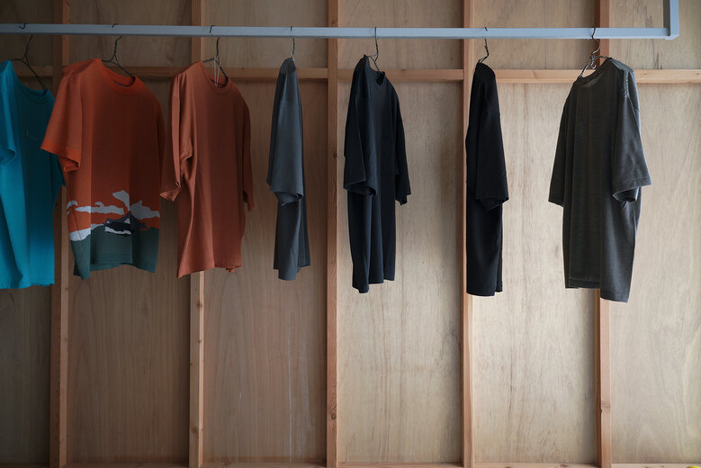 グッと気温が上がったり下がったり、落ち着かない気温が続いている。「そうだそうだ、夏はムシッと暑かったよな。」と思い出させてくれた。そろそろ夏構えをしようじゃないか…..何を着ても暑いのだからせめて心地よいモノを。テンションが上がるモノを。と強く思う。忘れてしまっているでしょ?あの、朝起きた時からムシッと暑いのを。起きて、さて何を着よう!ってそんな爽やかな朝ではない。グデ〜っと起きて、あぢぃーってエアコンの風を探す。(思い出すと絶望感すら感じる)そう、夏はきっとくる。なので、せめて気分的にあげてくれる、半袖のTシャツを1階には並べました。それに合うパンツとサンダルも。