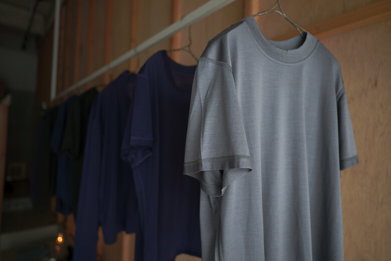 普通のウォッシャブルシルクは洗濯をすると表面のタンパク質のコーティングが剥がれていって、硬くキシキシとした触り心地になってしまう。糸オタクでもある(私たちが勝手にそう思っている)デザイナーのインディゴさんが1から作り出したシルクの糸は洗っても洗っても柔らかく、どんどん柔らかさが増していく。初めて着た時は本当に驚いて、お客様に伝えなければという使命感に駆られていました。あまりの着心地の良さに皮膚が喜んでいるような、そんな感覚。体が喜べば心も落ち着いてくるような気がしていて・・だから勝手に”着る漢方薬”と呼んでいます。今週の一階はその着る漢方薬を中心に並べています。久しぶりに新型のSILK Tとカーディガンも届いています。ぜひご覧ください。