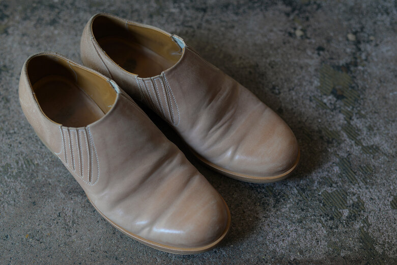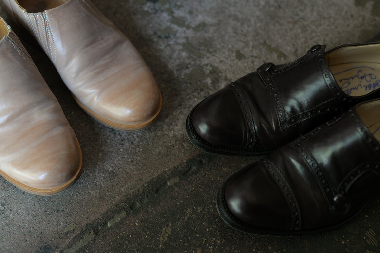 長距離を歩き回るにはスニーカーが良いかもしれませんが、そうでない時には足に合った革靴の方が一日履いていて疲れる事はありません。革靴は地面をしっかりと感じられるし、履くたびにシワや色の変化、艶が増し日々楽しませてくれます。あとは履くと背筋が伸びるような、ヨシっ!と気合いも入ります。しっかりメンテナンスすれば何十年と使い続ける事ができ、その間に様々な記憶が刻まれていくだと感じています。