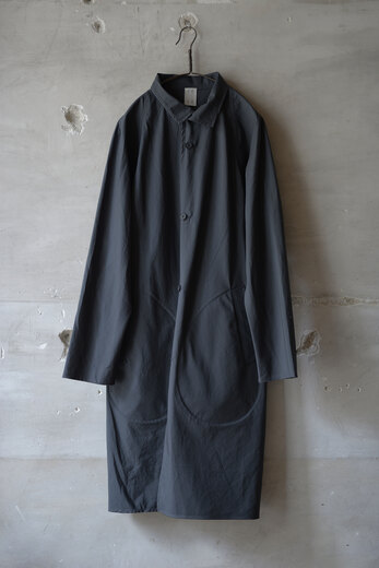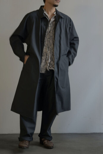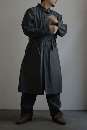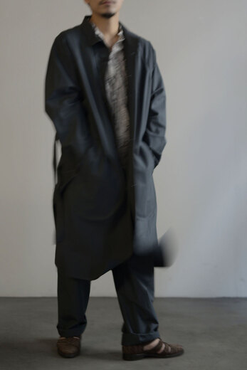 まるでトレンチコートを変形させたようなデザインでBOUNCY TYPEWRITERという高密度に織られたコットンが使われている。バサバサッと音が鳴る程ハリがありドライタッチな素材。アシンメトリーな襟、特殊なパターンの一枚袖、運動量を確保したマチなどシンプルに見えてとても考えられた作りのZERO COAT。羽織ると空気を孕んだ様な軽い着心地で寒暖差のある日本の春にはとても適している。植物は芽を出し、蕾が開き花を咲かせる。そして入学や入社など、春は始まりの季節。気分新たに、春コートを新調してみてはいかがでしょうか?