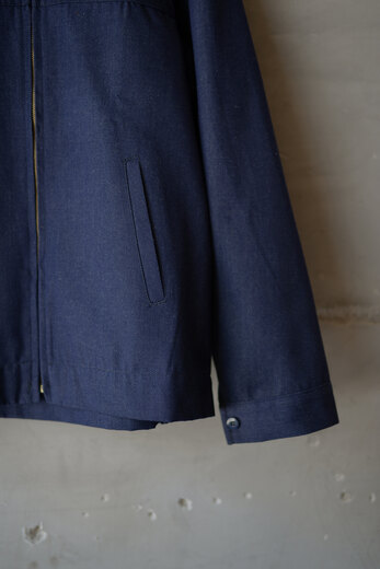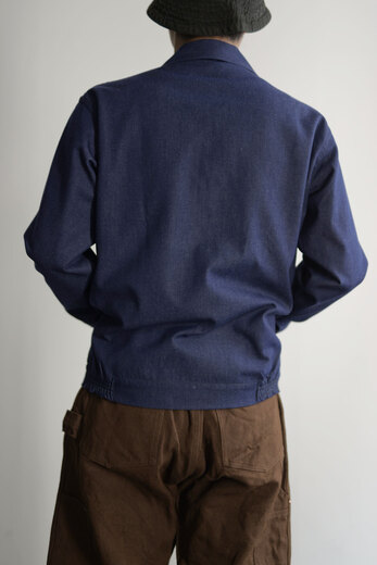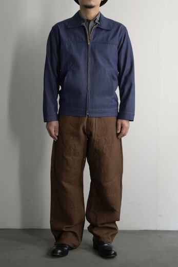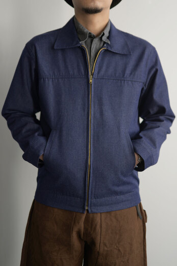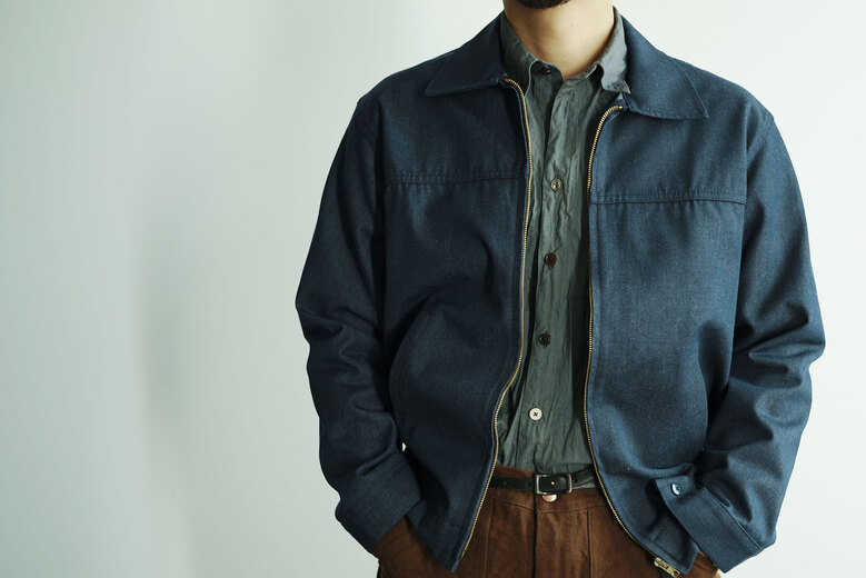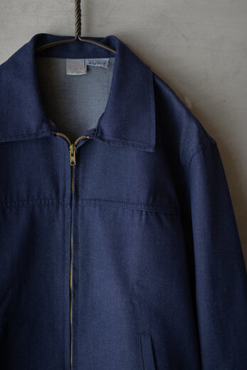 毎日使うから丈夫である事、作業に適した作りである事、そこだけ考えていれば何だって良いはずだけど、どこか美しい。作業着なのに着ると気分が高揚する。それは作り手の美意識からなのかわからないけど、ヨーロッパのワークウェアはそんな物が多い。70年代フランス。化繊が混じったインディゴデニム。コシがあり、滑らかな触り心地はいかにもフランスらしいデニムだ。裾の両サイドのゴムが中々強力でジップを上げればキュッと締め付けられる感じ、この感じが久しぶりに良い気がして。中にシャツを着てちょっとタイトな感じで羽織って、太いパンツを穿いてみる。丈がそんなに長くない、このバランスが絶妙なワークブルゾン。