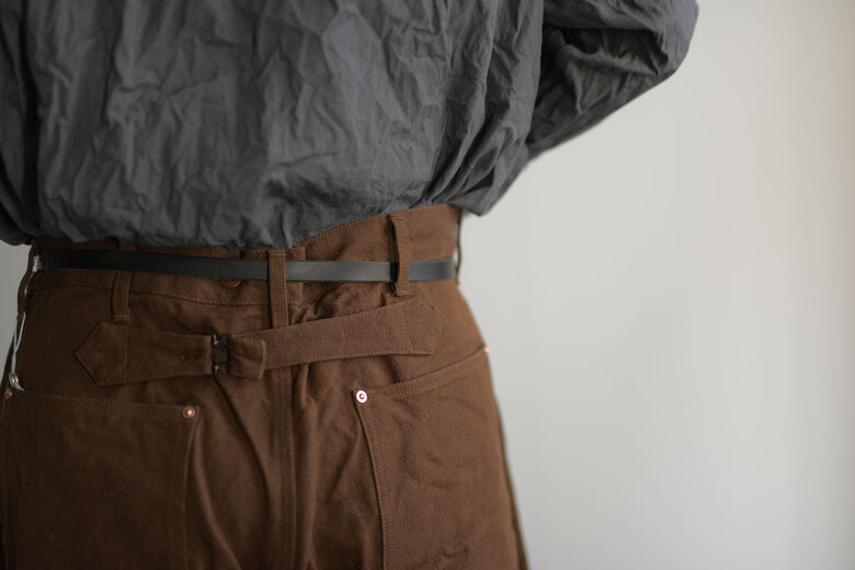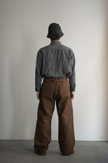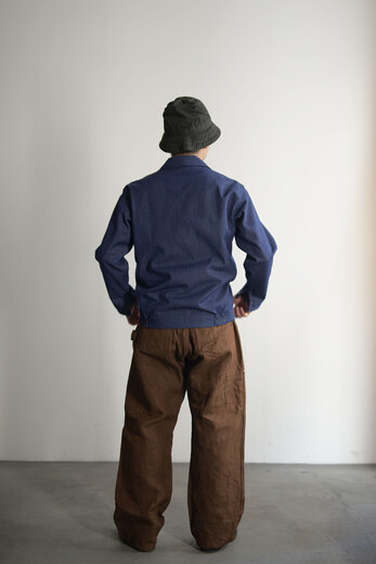 デニムのようにガンガン使えて屈強な、それでいてフェードしていった時のグラデーションが美しいヘンプダック。様々な所にリヴェットで補強され、無骨なイメージのあるダブルニーのペインターパンツ。COMOLIだからなのか、そんなに無骨には見えず、穿いてもそれを感じず。革靴とも相性が良い。長く使えば使う程、柔らかくなって色も変わり、少しずつ自分のものになっていく。その過程も楽しめるだろうし、変化していく洋服はなんとも魅力的だ。