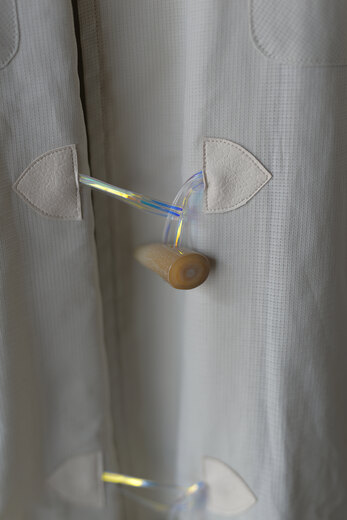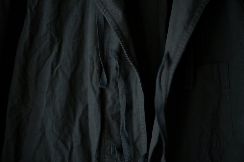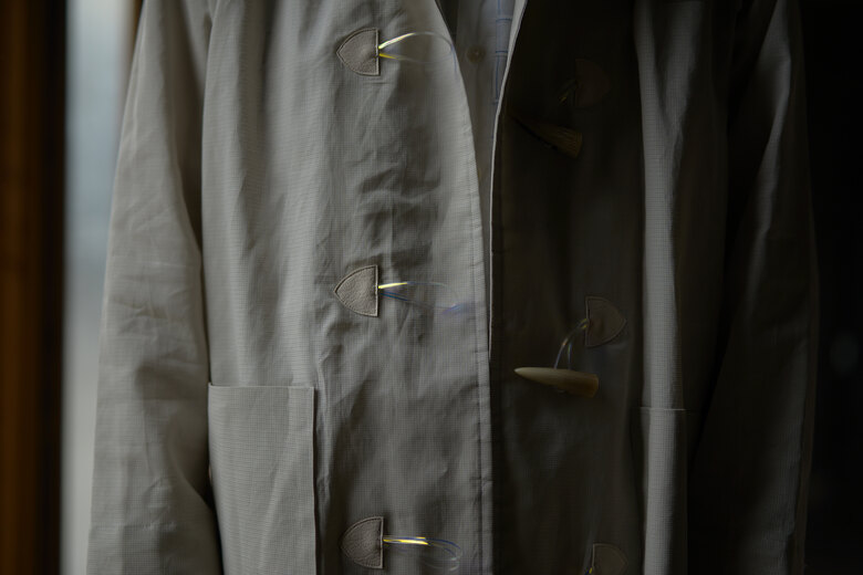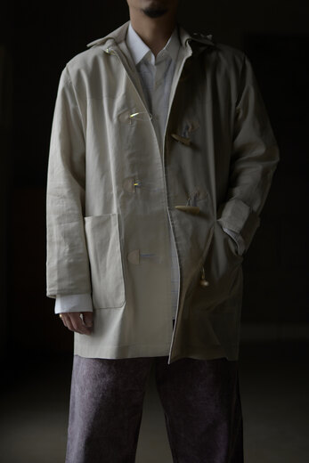 ここ数年は春が短く夏になるのが早い。着る期間が短いかもしれないけれど、春に出るアウターは綿や麻、梅雨の時期を見越した素材など冬には見られない物があり色合いも綺麗な物が多い。それらは着るだけで季節を感じられて、気分までも明るくしてくれる。だから春のコートはどうしても着たいと思ってしまう。たとえ寒くても着込んだり暑かったら中を薄くしてみるとか・・・工夫さえすればある程度は何とでもなる。CLASSのダッフルは透ける位薄く軽く、ナイロンの様なハリがあるコットンでフードは取り外し可能。トグルには光沢が美しく希少なホワイトホーンが使われていて、そのトグルを留める七色に光るループも面白い。そのループを留めているのはウルトラスエード。ちょっと個性のあるダッフルコート。春も楽しいです。