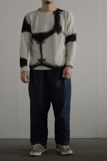 ニットを見ると寒い日々を想像する。冬の寒さから守ってくれるし、気分も暖かくなる。冬にしか着れない、そんな特別感もあってニットが着れる冬はとても好きな季節だ。スズサンのニットはオーストラリアのエクストラファインメリノウール。古い紡績機械を使っているそうで、緩やかな不均一さ、自然な表情が特徴のニット。撚りを強くする事によってドライタッチで素肌に触れても全くチクチクせず、むしろ気持ちが良い。さらにシームレスなので、着心地は申し分無い。シャツやジャケットの下に或いはカシミアのセーターの下に。有松鳴海絞りの亀甲柄が隙間からチラッと見え、いつもと違う雰囲気を出せるでしょう。ウールは製品になってからも呼吸をしているそうで、湿度を調整し常に快適な状態を保ってくれる。消臭効果もあり自宅で気軽に洗濯が出来る。素肌に触れる物だからこそ、イージーケアは嬉しい。インナーとして最適なニット、今まで持っていなかったアイテムではないでしょうか?それは決して冒険ではなくて、そんな大袈裟な物でもなくて、新しい感じというか感覚で。