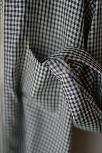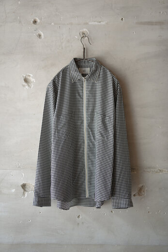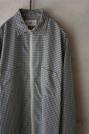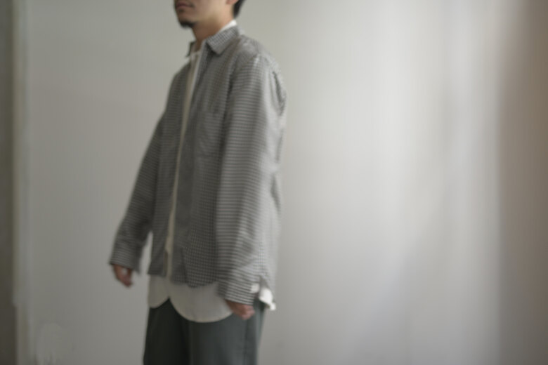 シャツの様でもあり、羽織の様な物。そんな洋服は狭間の時期(冬になる前の秋や夏になる前の春)や寒い時期にはとても使い勝手がよく、持っていて損のないアイテムである。だから気に入ったものはつい買ってしまうので、いつの間にかクローゼットにはそんな洋服が沢山並ぶ様になった。新型のジップシャツはの素材はキュプラ100%。何も前情報を入れず触るとナイロンだと思ってしまう位滑らかでシャリシャリしている。襟のベージュのステッチも効いていて素材の使い方や少し捻ったデザインがwellだなと感じたシャツだ。暖かい時にはTシャツの上に羽織って、寒い時にはジップを上げてジャケットやカーディガンを上から着る。そうすればギンガムチェックが映えて印象が明るくなって気分も良い。