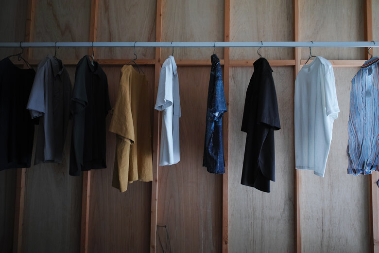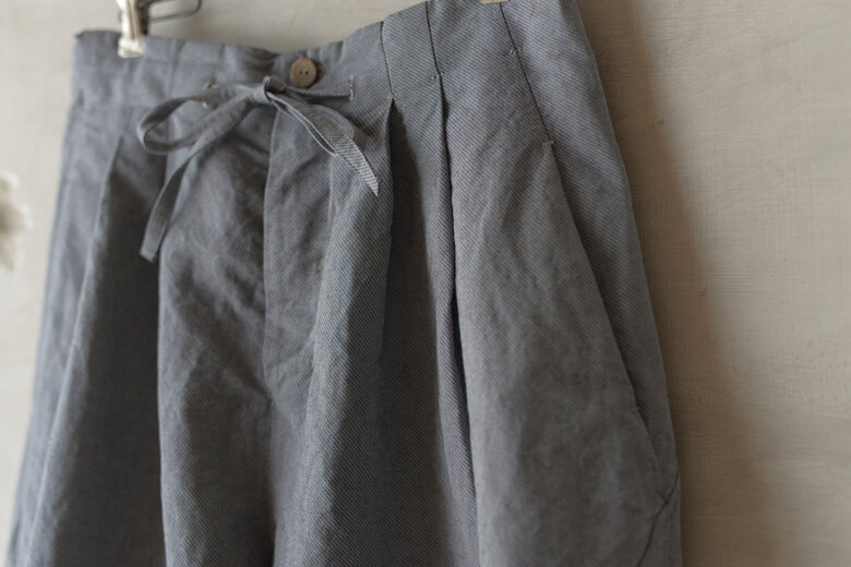 パジャマのようでパジャマではない。そんなリラックス感のあるパンツはここ数年使う事が増えている。自宅でくつろいでいる時やちょっと出かける時にはTシャツだけ着替えれば良い。単に楽をしたいという訳ではなく、気に入ったパンツを長い時間穿いていたいという思いもあるし、良い気分になれるからでもある。9世紀から15世紀まで存在していた王国、クメール。現在のカンボジアの元となった王国で伝統的に作られていたクロマーという綿布だ。一見普通のチェック柄のプリントの様に見えるが亀の甲羅(turtle scales)と呼ばれる最も繊細な技法の生地。その生地をインドで手織りし縫製まで行っている。目を凝らして見るとその繊細さに目を奪われる。シルエットは少しテーパードしたゆとりのあるイージーパンツ。ハリはあるが、肌当たりがとても優しく涼しい。シンプルな白いシャツと。綺麗なウール天竺のTシャツとサンダル。このパンツだからこそ出せる抜け感がクセになる。