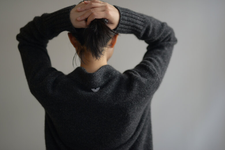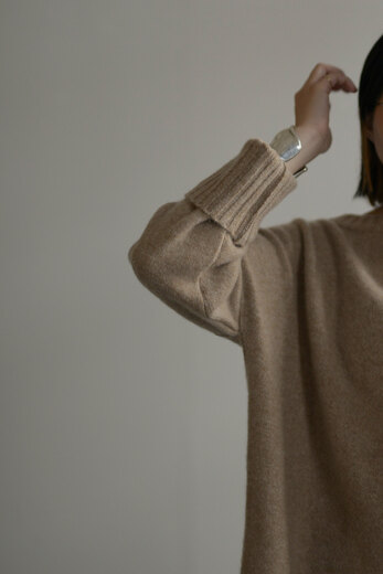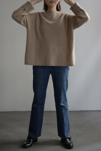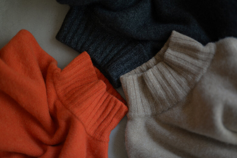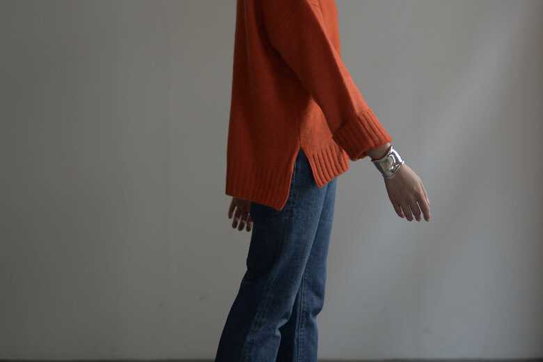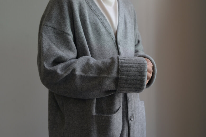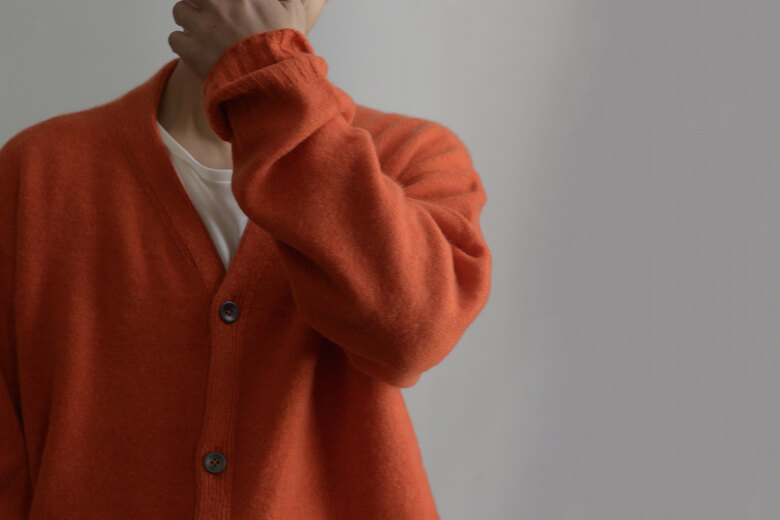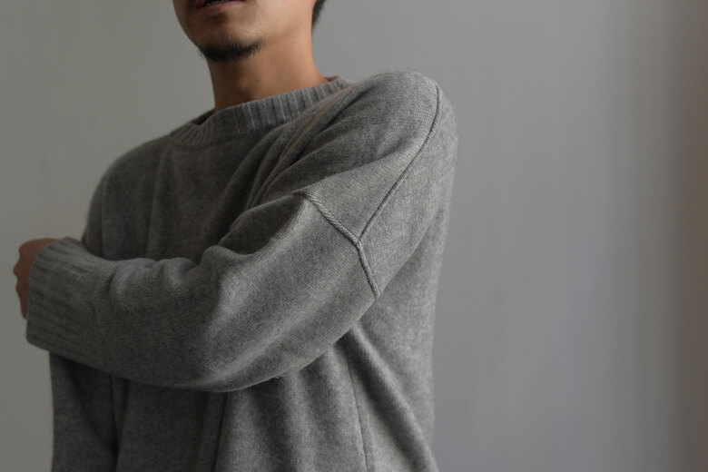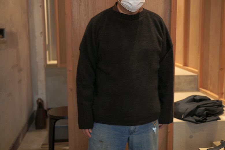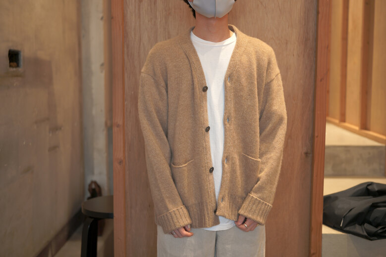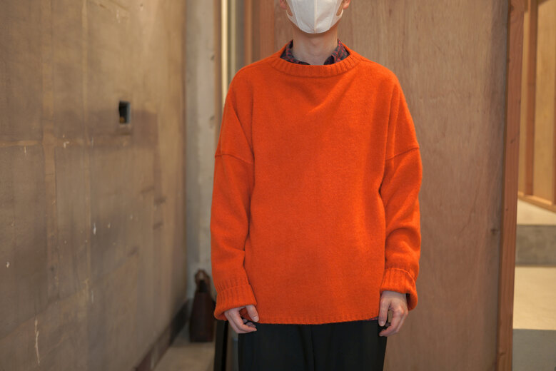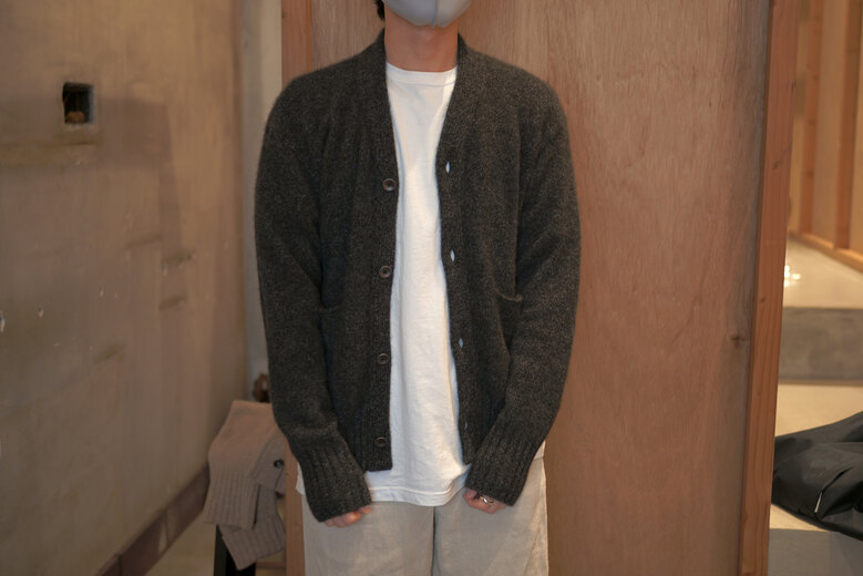 とろける様な肌触りのカシミア100%。こんな暑い時期でも脱ぎたくない!と思ってしまう程心地良かったです。新型のガンジーセーターを着てみましたが、肩の落ち具合や程良い抜け感が他には無いなと思いました。これは性別関係なくフィットすると思います。色は5色から、サイズは4サイズから選ぶ事ができます。試着するのは暑そうですが、店内は涼しくしておりますので気兼ねなくお越し下さい。