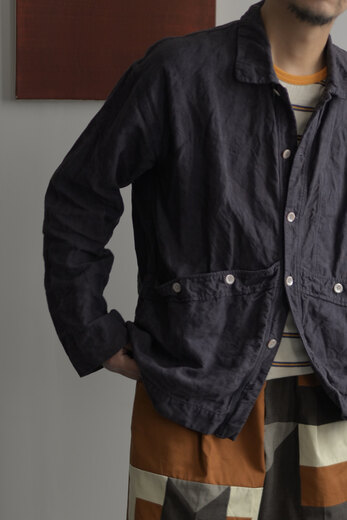 オリバーチャーチのBIG POCKET JACKETにメッシュのロンT、オマールのショーツにPETROSOLAUMのドローストリング。オリバーはだいぶ連続で着たから休ませたけどやっぱり着たくなる。どんどん体に馴染んで柔らかくなる。古いリネンは最高だ。
