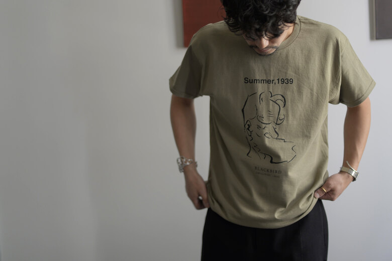 美術館や博物館に行くと、必ずミュージアムショップを覗きます。そこではほとんどの場合、図録とTシャツを買います。そこでしか買えない、その期間でしか買えないというのもありますが、グラフィックが個性的で面白いです。シャツの下にそんなプリントTを着る。そのグラフィックの事は着ている自分にしかわかりませんが、ある意味自己満足で、その満足度が何故か高いのです。このTシャツにもそんなニュアンスを感じました。今年のこの季節だけのTシャツ。そんなBLACKBIRDのTシャツを毎年集めてしまいそうな気がしています。