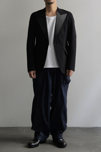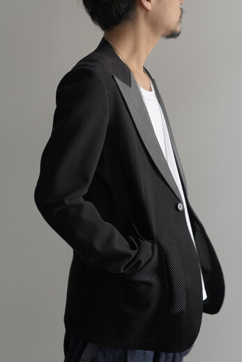 タンクトップに書いたのですが、その上に着るそれなりのジャケットの1つがこちらのrenomaのウルトラスウェードをパンチングしたジャケット。タンクトップにジーパン。上にバサっと”それなり”のジャケットを羽織って街を歩くなんてすごく都会っぽくて大人で昼でも夜みたいでカッコ良いなと憧れたりしていたけど、昔憧れていたその年齢にも近づいてきて、追い越したりもしていて、着てみると追い付いていて、あれ?着れる。ってなってる。スーツで使われるような俗に言うきちっとした生地で仕立てられたジャケットではなくて、”なにこれ?”って聞かれそうな遊んでる生地だから逃げ場があって安心さえ与えてくれる。タンクトップ同様にグッと背伸びして着る憧れで着て欲しいし、けっこうな大人になったと堂々と着て欲しいと思います。