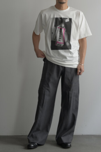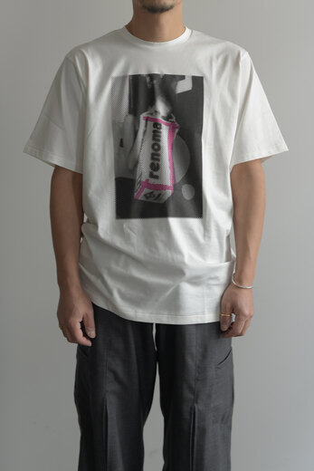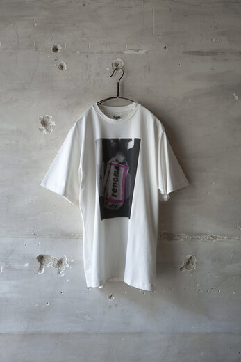 誰もが着たことのあるTシャツ。Tシャツは単に暑いから夏に着る為のカットソーではなく、生地は何か、気心地がどうか、ボディのシルエット、大きさ、厚み、色、そしてプリントされたグラフィックなど…..それと、どこで買うかやどこのを買うか。ブランドが出すTシャツはもちろん好きなバンドTeeや旅行先で見た展覧会のミュージアムTee、ラジオのイベントTシャツ、古着、ユニフォームなどなど、年がら年中身近にあり、それらは記憶に残り思い出ともなる。というわけで、Tシャツが好きなのは私だけではないと思います。このTシャツはrenomaの創設者のモーリス・レノマ自身が撮影した写真をモチーフにドットの大きさをランダムにして2版使いシルクスクーンでプリントされています。とても、いやすっごく心地よい生地。3種類のグラフィックがあります。さて、柄を選んで持っているパンツと合わせて楽しむ。擦り減る程着て、家着くらいになって、箪笥の奥でクシャってなってるのを見つけて久々に着て、やっぱ良いなってなったり…..それが出来るのはrenomaだって事もあると思います。