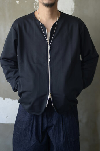 とてもコンパクトな裏毛。厚くもなく薄くもない。さらっと繊細な肌触りなのにしっかりとした生地。スウェットではあるがちょっと違う。とても高密度に織られているらしい。普通に見えて普通のもの作りではないthe besらしい洋服だと思った。丸首ではなくちょっとだけVライン。ダルっとなってしまうのを防ぐために襟と裾にはバインダーで補強までしてあり、YKKのエクセラのダブルジップは滑らか。そしてスリットのポケットまである。嬉しい。通年着れる至れり尽くせりのカーディガンだ。