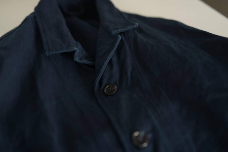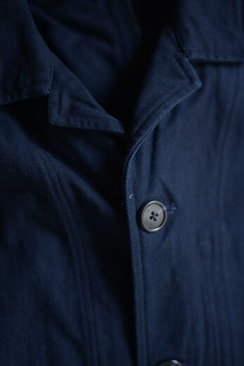 ヴィンテージではないのに、ずっと昔からそこにあったような気がする…そんな趣のBIG JACKET。インディゴ染めされたヘリンボーンはデニムとは違った経年変化を楽しめる素材。インディゴの褐色は決してマイナスではない。着用してきた証のようなものが残る、そんな風に思っている。着る回数や洗う回数、環境によって世界に一つだけのジャケットに育っていく。そんな先の想像を自然としてしまう魅力のあるジャケットだ。