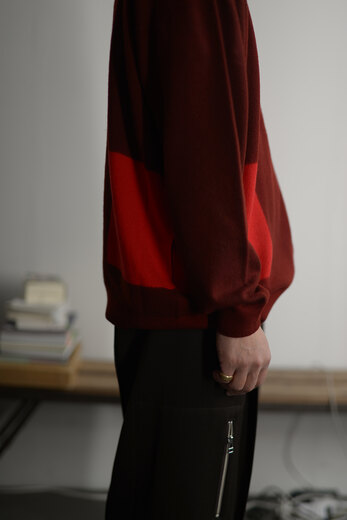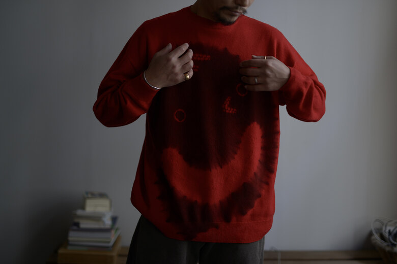 顔をうずめたくなるほど柔らかな肌触り。出来るだけ素肌に触れていたいと思えるsuzusanオリジナルの内モンゴル産の上質なカシミア。偶然が重なり、毛玉が出来にくい生地になったそう。いくつかの技法を用いて染められたスマイル。カシミアは着て、洗って、ブラッシングして。それを繰り返し長く使えば使うほど気持ち良くなる。そして愛着も湧いてくる。寒い時期にしか着れない洋服。それはとても特別に感じます。