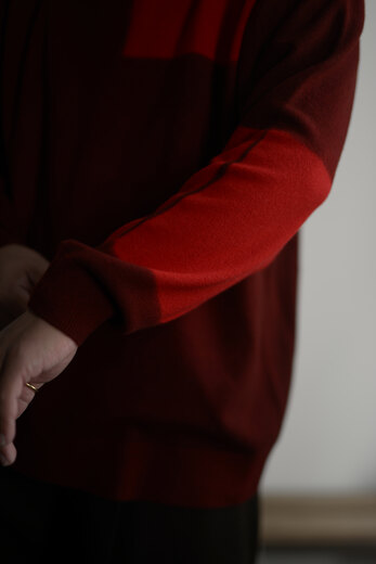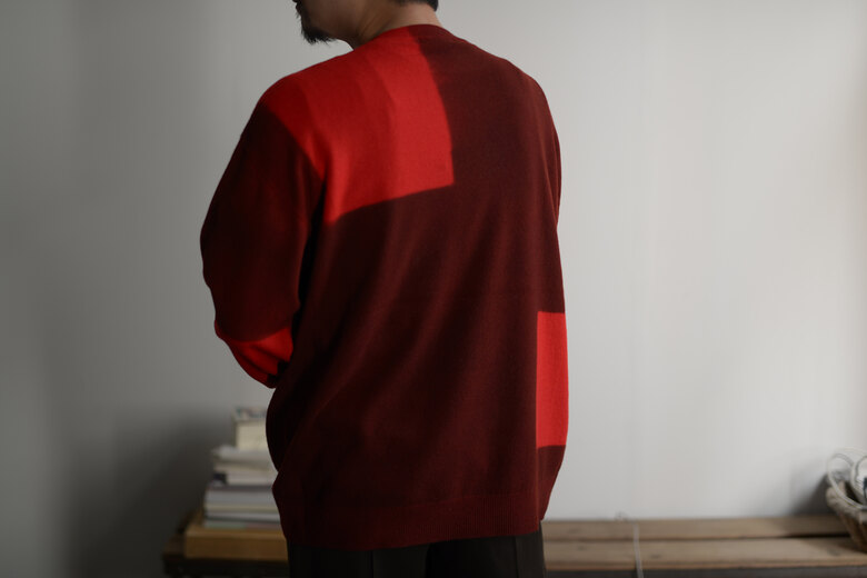 顔をうずめたくなるほど柔らかな肌触り。出来るだけ素肌に触れていたいと思えるsuzusanオリジナルの内モンゴル産の上質なカシミア。偶然が重なり、毛玉が出来にくい生地になったそう。板締め絞りという技法で板に挟んで染められている。滲みや不均一な線、一点物を手にする喜びに近いものがある。カシミアは着て、洗って、ブラッシングして。それを繰り返し長く使えば使うほど気持ち良くなる。そして愛着も湧いてくる。寒い時期にしか着れない洋服。それはとても特別に感じます。