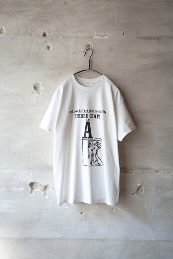 BLACKBIRDがフランスを代表する家具デザイナー”Pierre Chapo”とコラボレーションすると突然連絡があった。初めは聞き間違いかと思ったが、公式でコラボしたTシャツが寒い冬に作られるという難題だった。しかしよく考えてみると今日もTシャツを着ている。お客さんと話をしていても一年中着ますよねーと話になった。シャツの下に、ニットの下に、ロンTの上に。結局どの季節だったとしてもTシャツは必要なのかもしれない。デザインは言う事なし、格好良い。