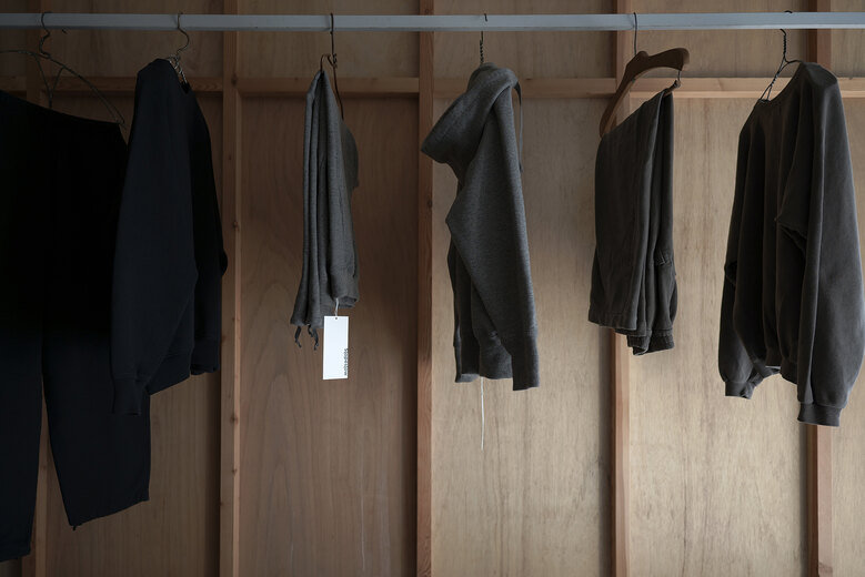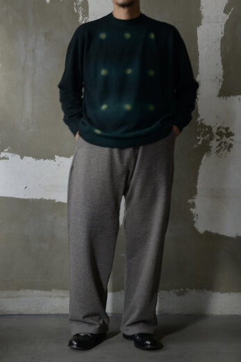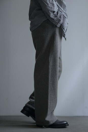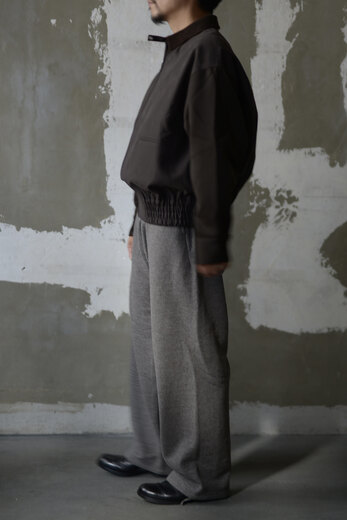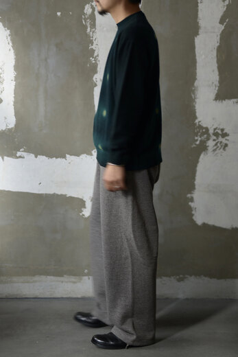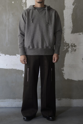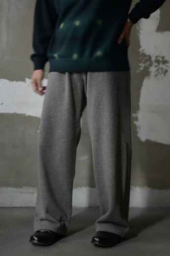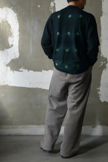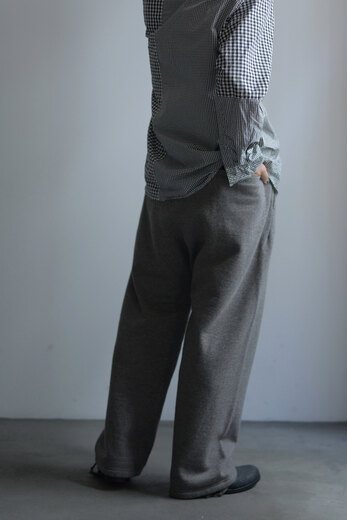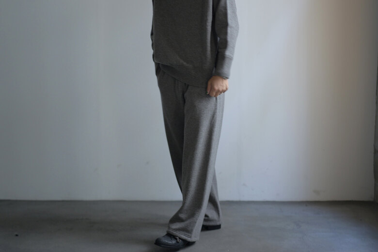 着用した瞬間に”あっ、これだ”と思う事がたまにある。Slopeslowのこのスウェットがそうだった。何の前情報もないままにとりあえず試着しようと持ってみるとずっしりとした重みに驚き、そしてこんなに目が詰まったスウェット生地は見た事が無かった。表裏ウォッシャブルの紡毛ウールを使った裏毛の素材で表と裏を繋ぐ糸にもウールを使った本当に100%ウールのスウェットパンツ。太番手なので目がグッと詰まり、洗っても縮まず、膝も出ず。そんな凄い生地だそうだ。(去年着用して確認済み)暖かいし、着心地も良いし、家でも外でもタフに使えるのが嬉しい。制服にしたい位、気に入ってしまいました。実際にこの前の冬はほぼ毎日と言って良いほどお店で穿いていました。