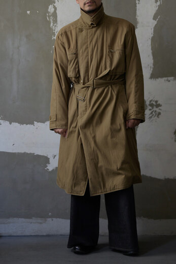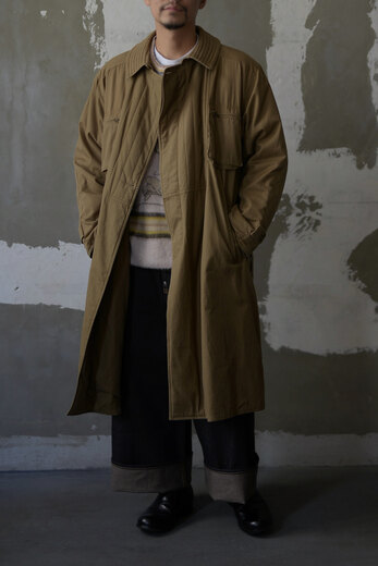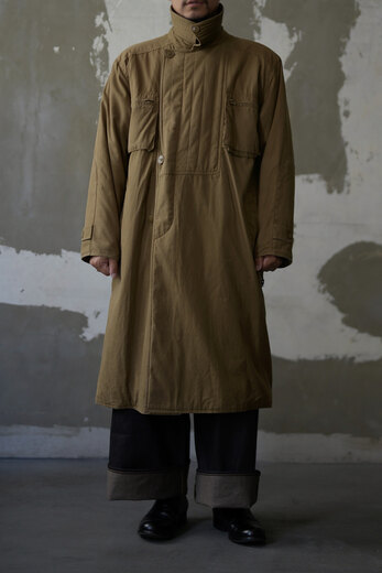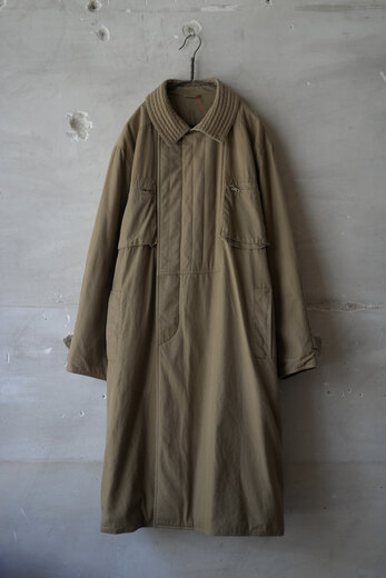 1970年代、イタリアのレーベル”アレグリ”が手がけたコート。レーベルの設立初期の貴重な個体です。元々はイタリアのメゾンからのOEMを手掛けていた背景もあって非常に質の高い物作りでした。独自のデザインも素晴らしい上に様々な有名デザイナーと協業しプロダクトを生み出してきたレーベルです。ミリタリーを思わせるコットンに中綿入り、軽くて暖かい。マチ付きのポケットのインサイドアウトデザイン、ラペルやフロント切り替えのステッチワークなどクラシック、ミリタリー、ワーク・・・様々な要素を融合させた素晴らしい1着。この込み上げてくる感情を久しぶりに感じました。