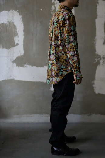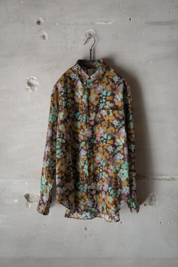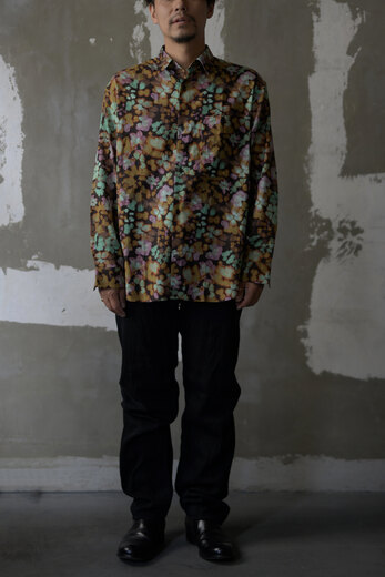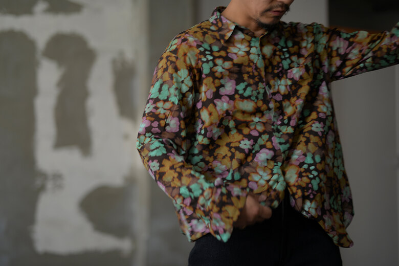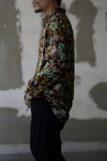 アーティストのADRIAN TESTARDとコラボレーションによる雨に濡れて滲んだようなオリジナルの花柄プリント。イギリスのリバティプリントからのアイディア。どことなくクラシックだけどモダンでイギリスの古い映画を思わせるそんなオリジナルの生地はseya.らしい色使いと綺麗になりすぎないざらついた生地と透け感。その日の気分で1枚で主役に持ってくるのも良いし、ニットなどの中に入れてアクセントにしても良い。こういう大人っぽさが漂った遊び。みたいなニュアンスがそろそろ似合う頃なんじゃないかな?したいなーと思う。