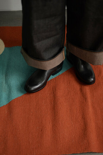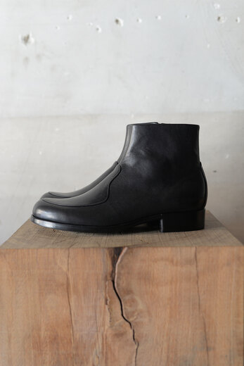 綺麗だけど綺麗すぎない。カジュアルになれるけどカジュアル過ぎる事はない。どんな場面でも雰囲気の合う03の美しい木型。サイドジップの新しいデザインです。シューレースの靴のようにフィットを調整するのが難しいデザインだがしっかりと足首が固定され心地良いフィット感。余計な装飾もなく削ぎ落とされたミニマムな部分と、馴染みやすいオイルソフトキップレザーの柔らかい質感とすごくバランスが良いと感じました。