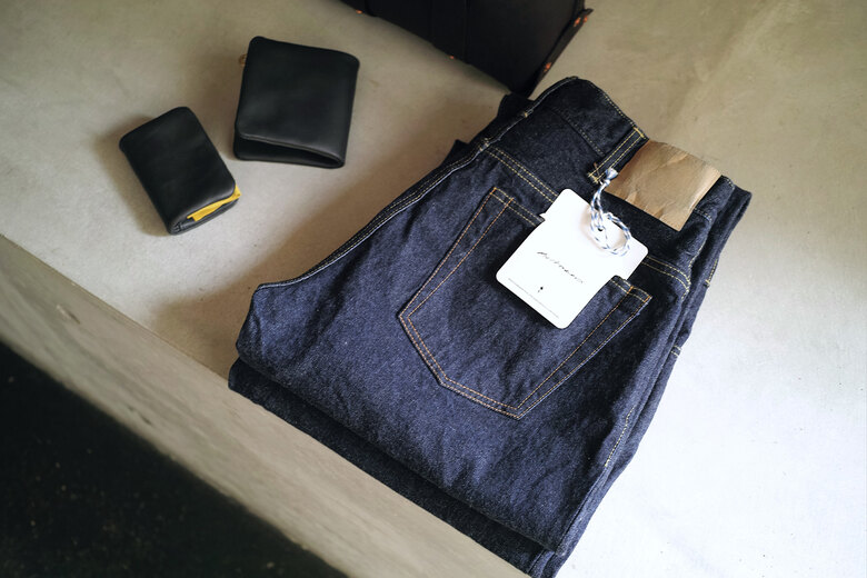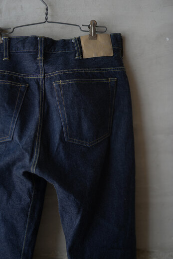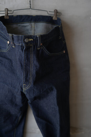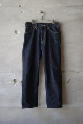80’sに出回っていたデニムを太過ぎず細過ぎずの独自の解釈と現代人の体型や骨格を細分化して検証し作られた新しいスタンダードなデニムパンツ。生機デニム(防縮加工を施していない)なので、ヴィンテージのような経年変化を楽しめる。サイドに丸みを持たせる為のミリ単位で耳を摘みながら形成したストレートシルエット。サイズによって微妙に変えているらしく、実際に穿いてみるまではなかなか理解が出来なかった。ジャストで穿いてもサイズアップしてもしっくりくるのは不思議な感覚。デニムは自分にって、お店にとっての最高を常に追い続けている気がする。だからお店に並ぶデニムはどこかに最高と思えた部分があるのです。