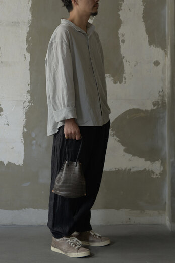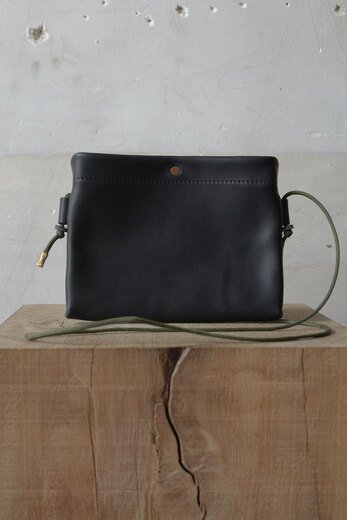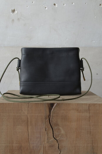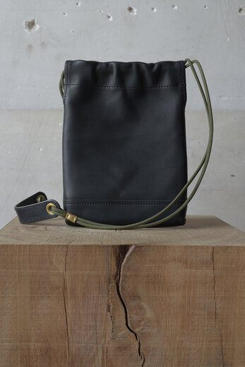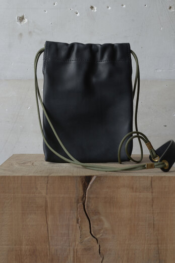 飲みの席でよくものを無くす、という話を店頭ではよく聞きます。このくらいコンパクトならそのまま掛けていても邪魔にはならず、スマホやお財布、アクセサリーとか時計とか外したくなったらとりあえず入れておく。そうすれば少しは安心できるかもしれません。GUIDI社のしなやかなカーフ。触り心地が良くて無意識に触ってしまう素晴らしい革。しっとりとしていて、上品な艶が楽しめる。紐はパラシュートに使われるものなのでかなり頑丈。まるでポケットの様に使える巾着ポシェット。