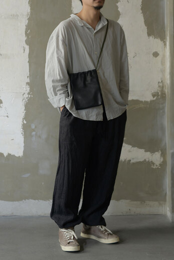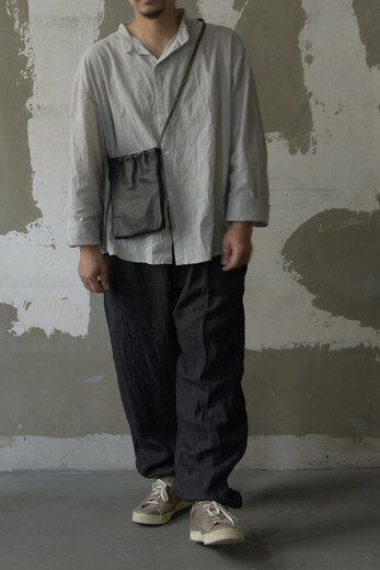 はたしてスマホとお財布だけが丁度入る鞄は必要なのだろうか?遊びに(飲みに)行く時は大概スボンのポケットに収まる程の荷物だ。だから手ぶらでも問題ない。しかし、ここ数年はイージーパンツを穿く事が多い。イージーパンツだとポケットに荷物を入れると少しずつ下がってきてしまい、定期的にスボンをヨイショと上げなくてはならない。それはすごく不便だと最近になって気付いた。だからトーチカのサコッシュや巾着ポシェットはその不便さを解消してくれた鞄だ。手ぶら派の人にも違和感のない着用感、鞄好きの人にも満足出来る作りと革。ポケットが膨らむ事もなくなりスマートに見える。良い事しかない気がする。